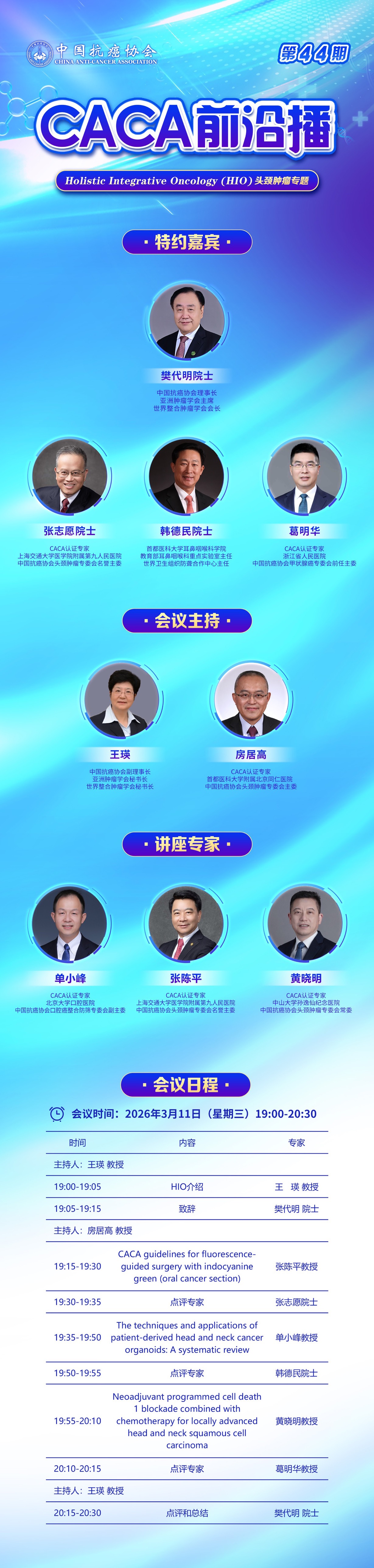 CACA前沿播(第44期)|Holistic Integrative Oncology (HIO) 头颈肿瘤专题